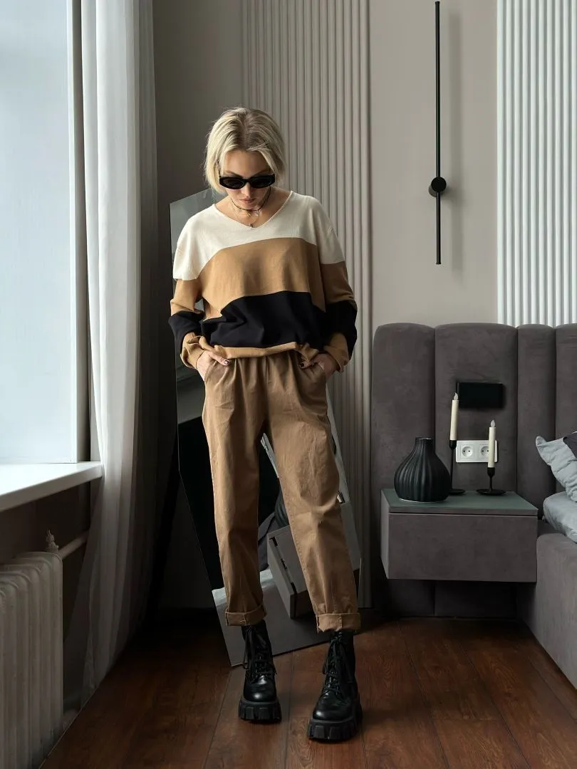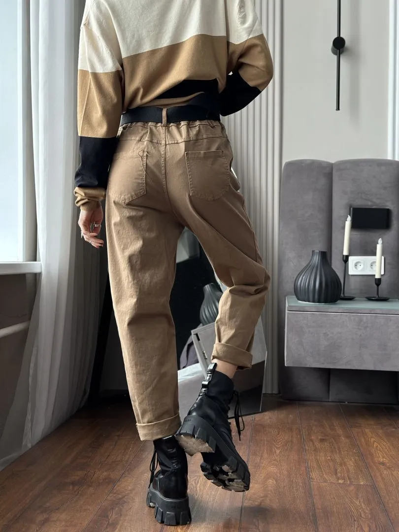 Брюки из хлопка в бежевом цвете