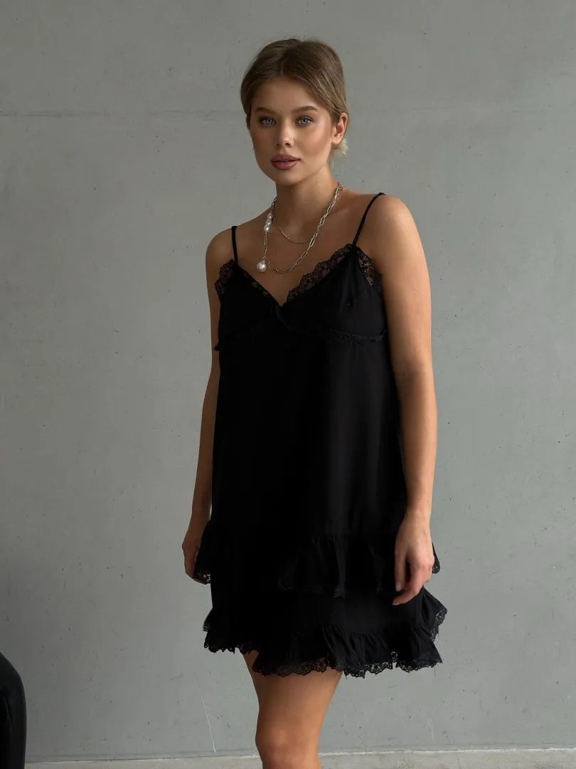 Платье на бретелях в черном цвете