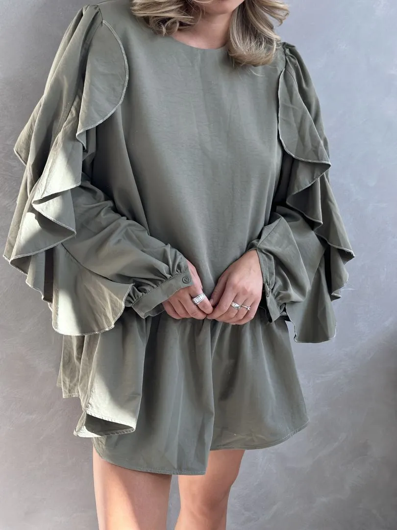 Платье с воланами в цвете хаки