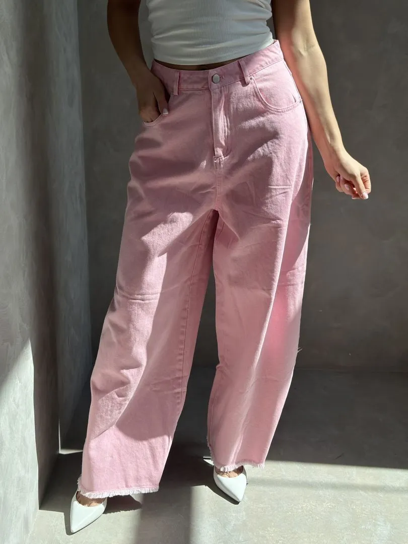 Джинсы прямого кроя в розовом цвете