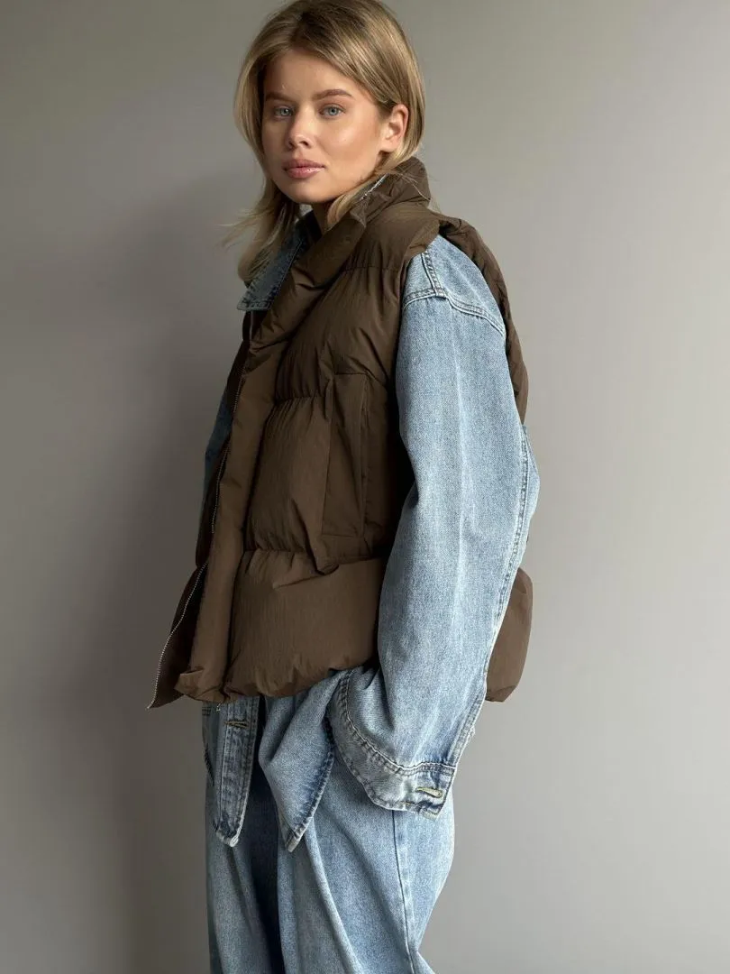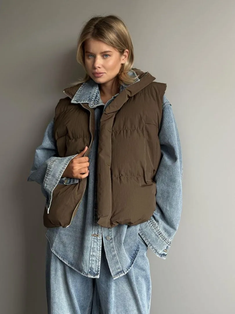 Жилет в синтепоне в шоколадном цвете