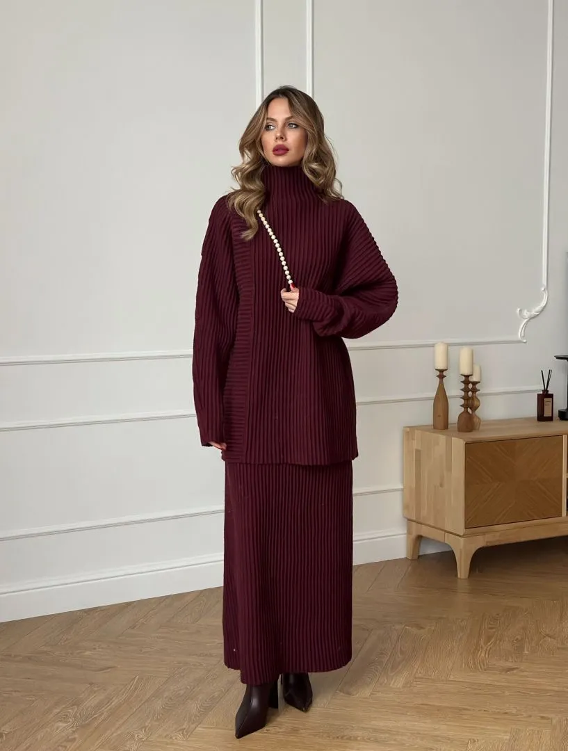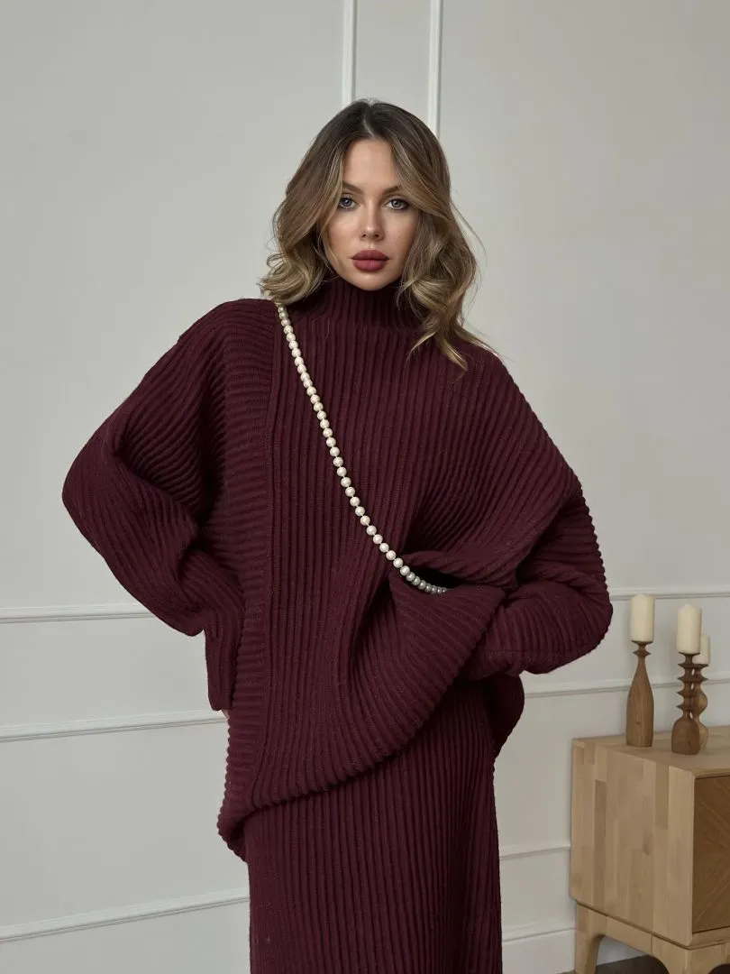 Костюм из трикотажа в цвете бордо