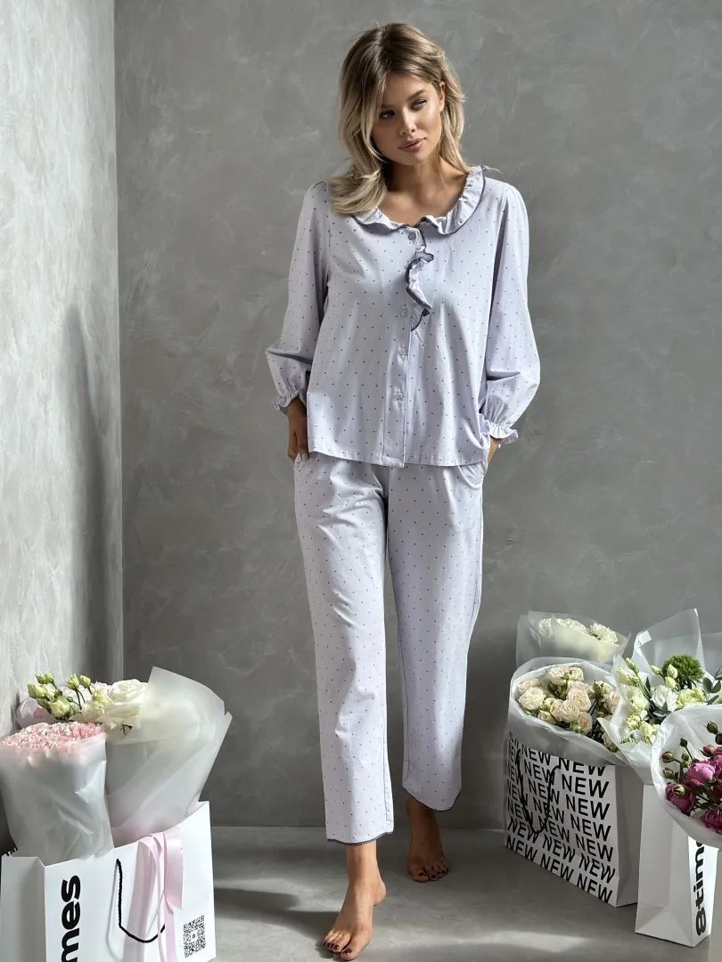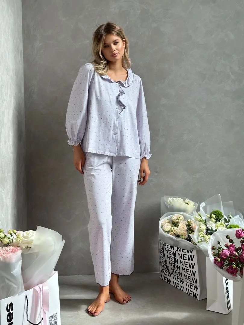 Пижама - это уютная и комфортная одежда для ночного сна. Комплект состоит из рубашки и брюк в лавандовом цвете,