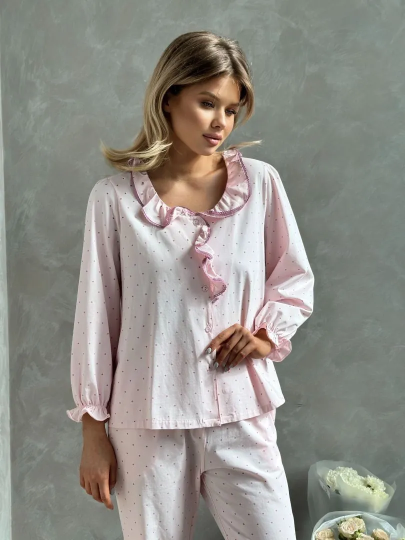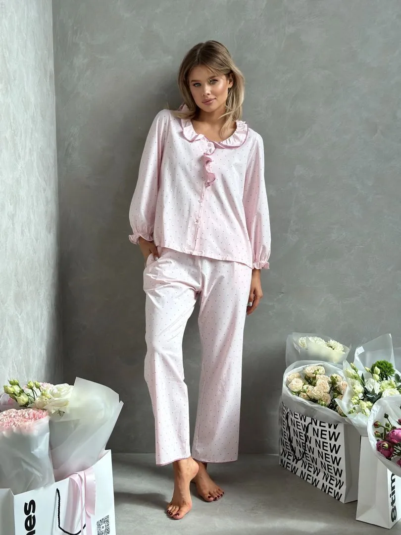 Пижама - это уютная и комфортная одежда для ночного сна. Комплект состоит из рубашки и брюк в розовом цвете,