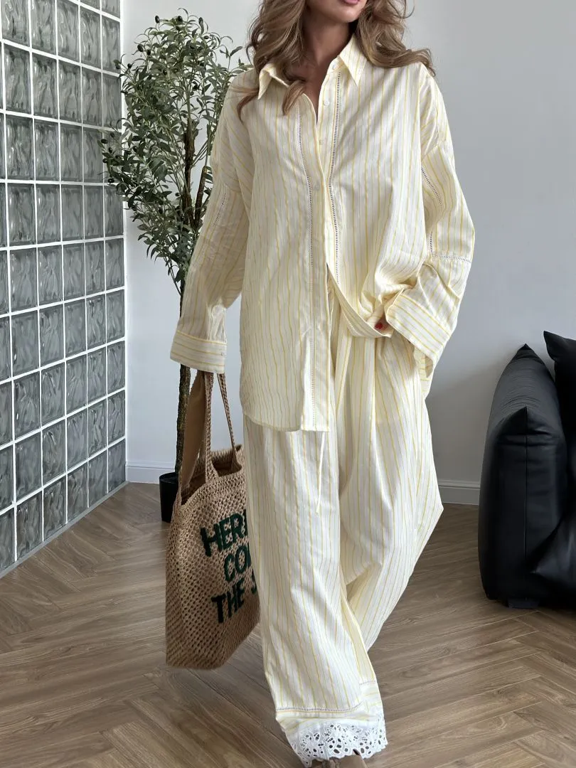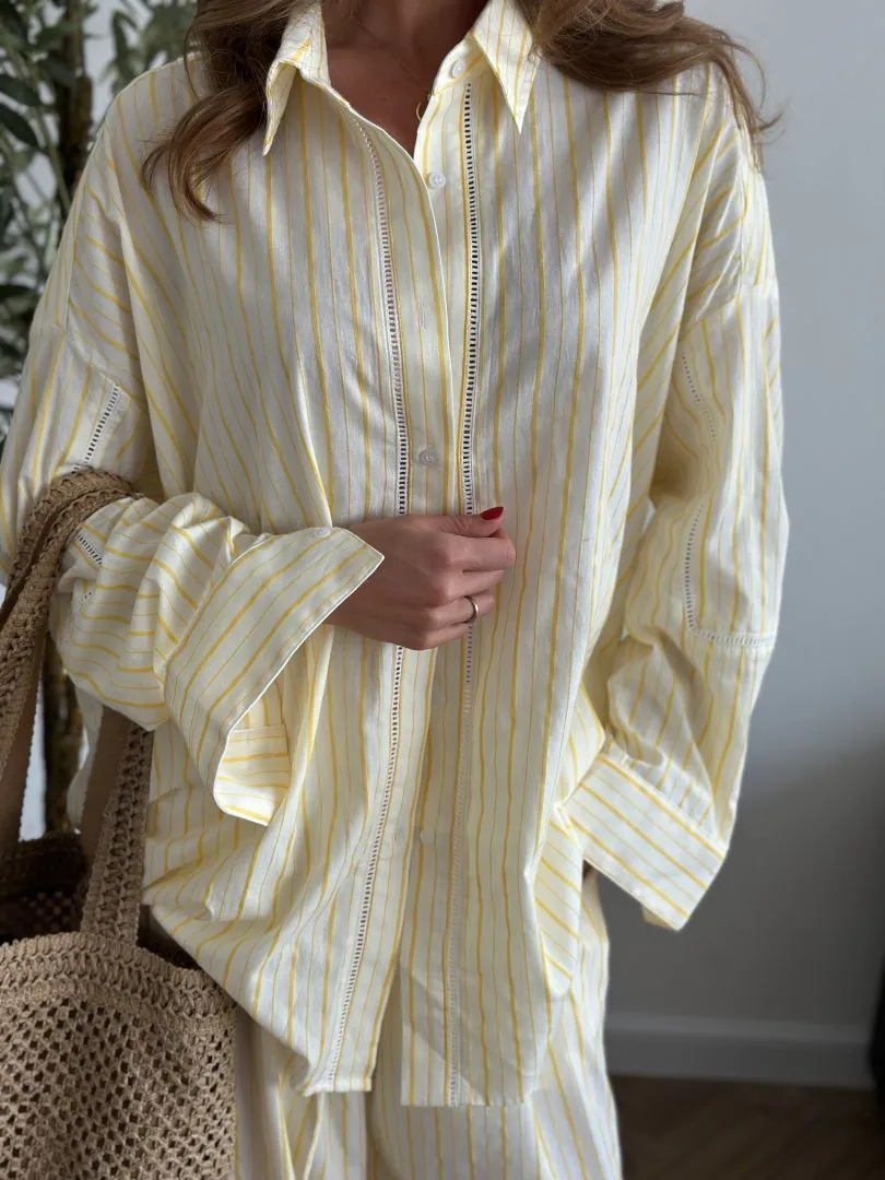 Рубашка из хлопка в желто-белом цвете