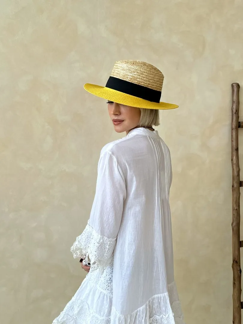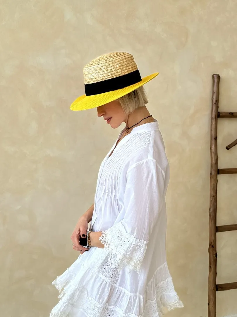 Соломенная шляпа в желтом цвете