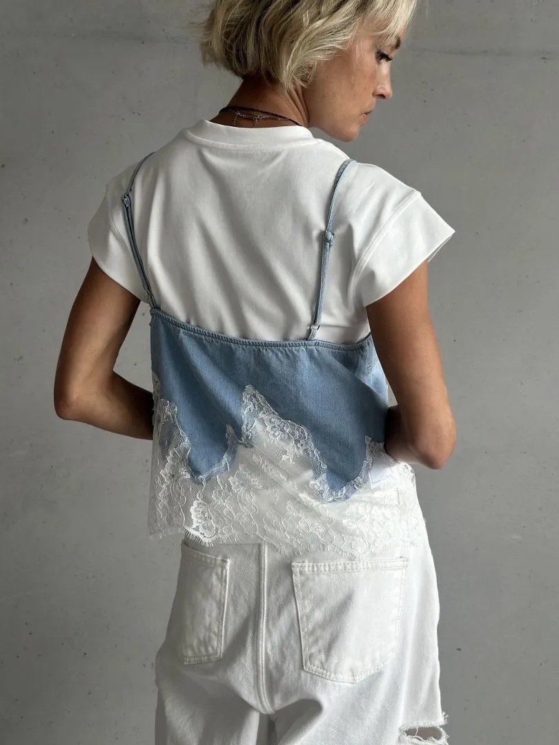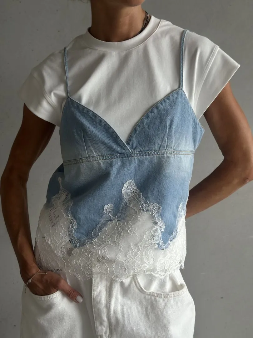 Комбинированная футболка в бело-голубом цвете