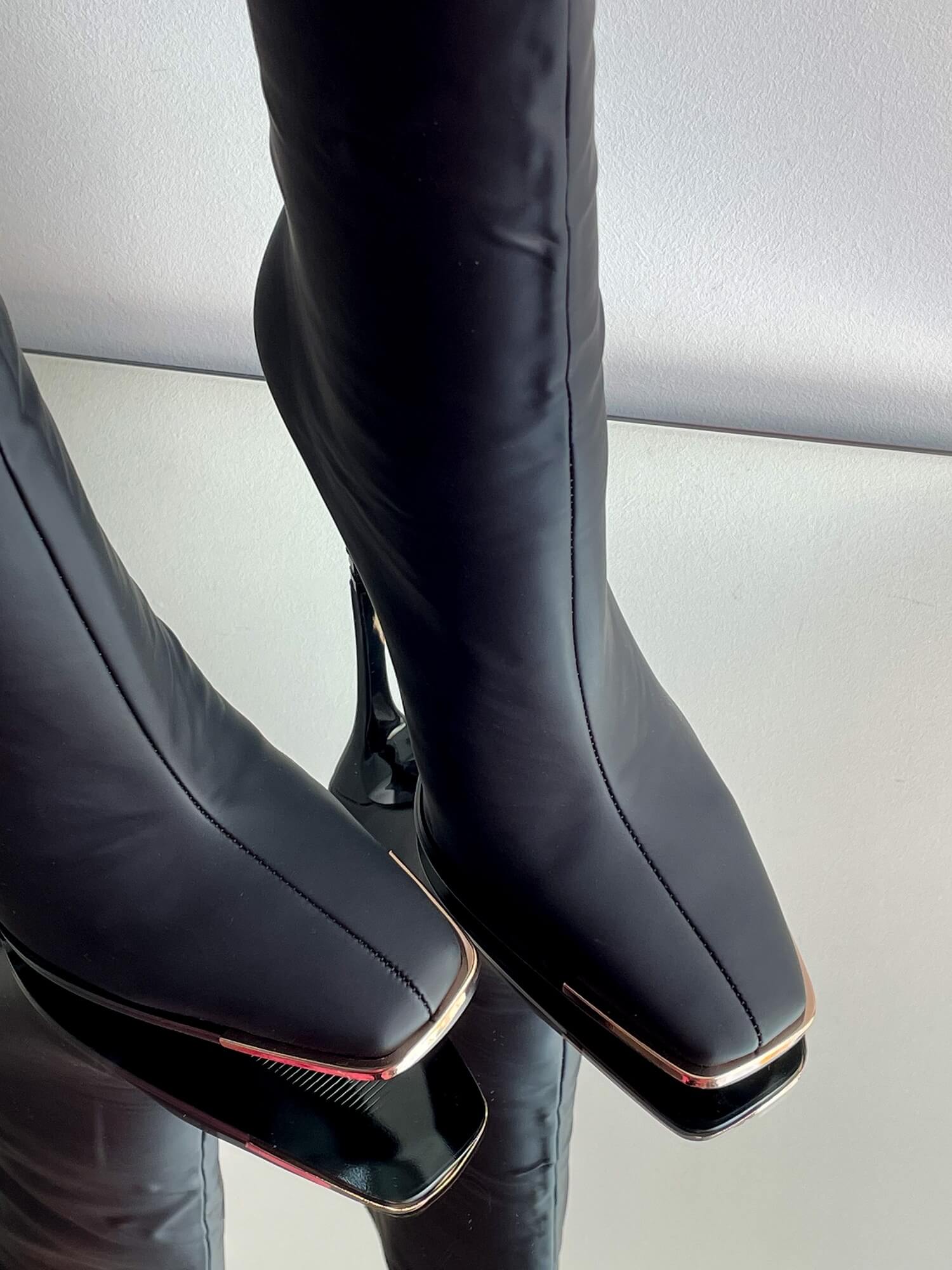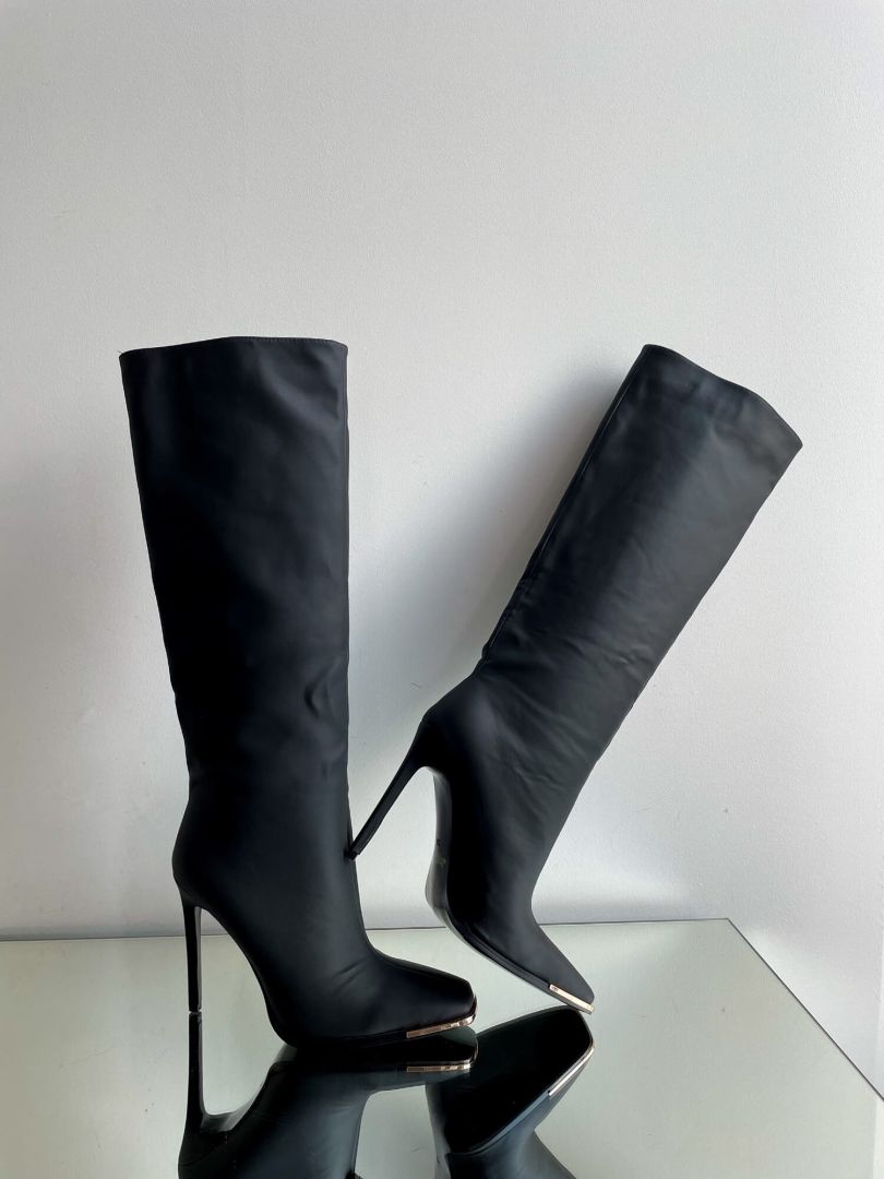 Сапоги из прорезиненного материала в черном цвете с золотой фурнитурой на носке