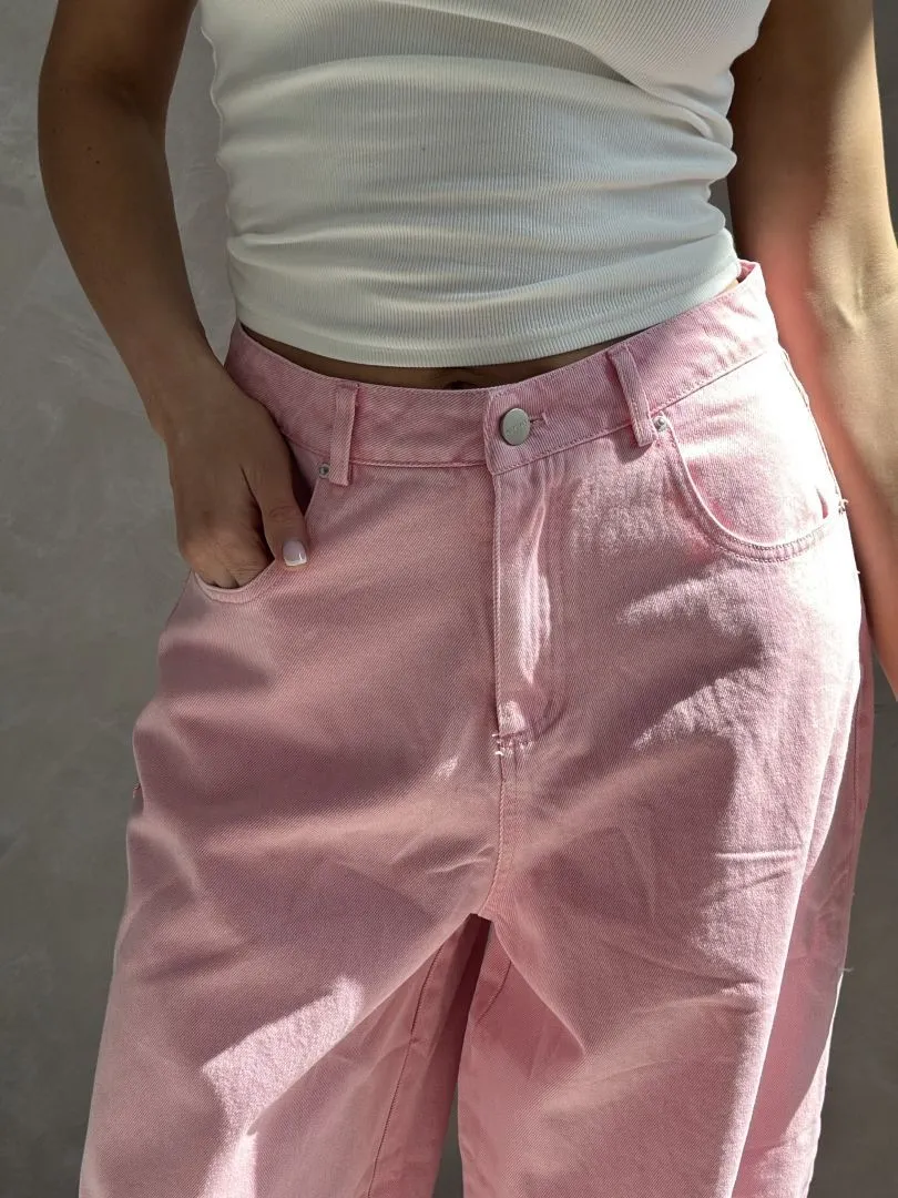 Джинсы прямого кроя в розовом цвете